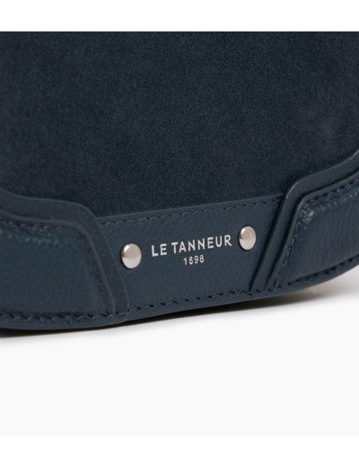 Besace petit modèle en cuir grainé et nubuck, avec fermeture aimantée, marquage Le Tanneur et intérieur jacquard anniversaire 125 ans. Porté main, croisé ou épaule grâce à sa bandoulière ajustable et sa poignée amovible ajustée au corps du sac.