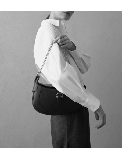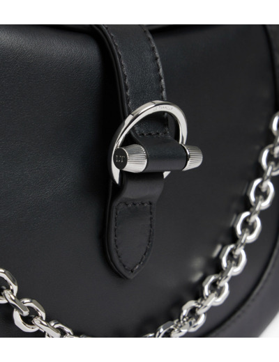 Petit sac avec fermoir signature et marquage Le Tanneur gravé. Bandoulières amovibles en cuir (ajustable) et chaine (non ajustable). Porté épaule ou croisé.
