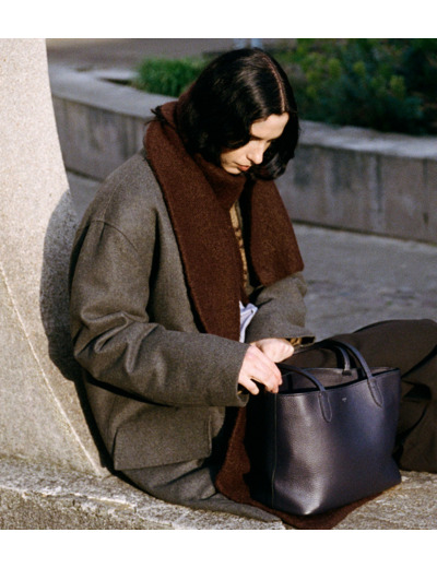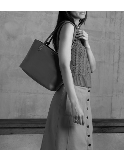 Petit sac cabas zippé en cuir grainé double face intérieur contrasté et pochette amovible. Porté épaule.
