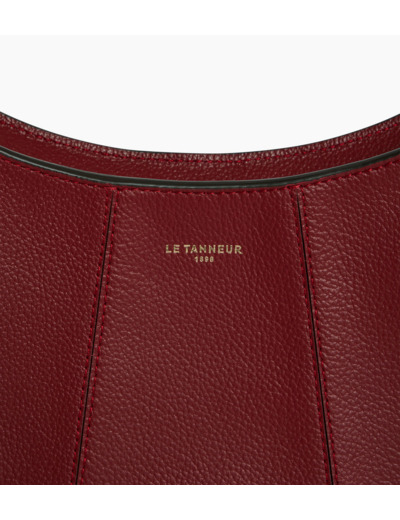 Petit sac demi-lune avec doublure jacquard crépuscule et marquage Le Tanneur. Double porté grâce à sa mini bandoulière porté épaule amovible et sa bandoulière porté croisé ajustable et amovible.