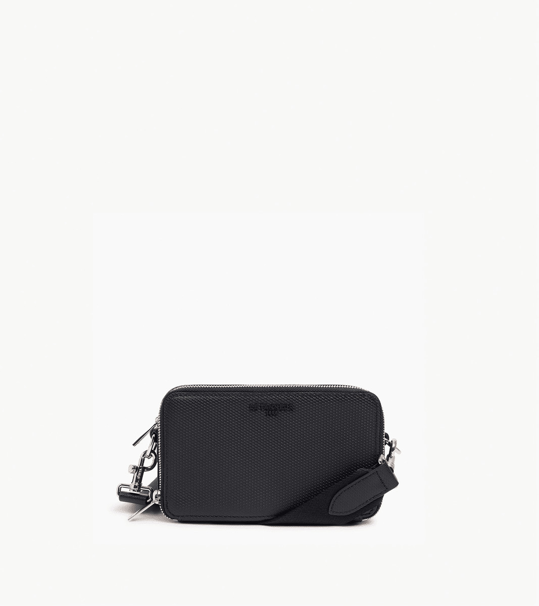 Sacoche portefeuille zippée avec éléments métalliques finition argent et intérieur jacquard anniversaire 125 ans. Porté main, épaule ou croisé grâce à sa bandoulière ajustable et amovible.