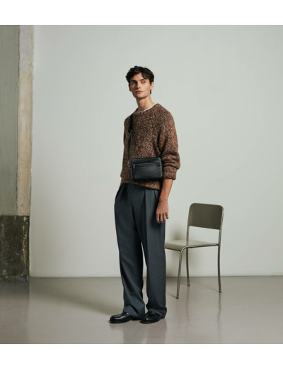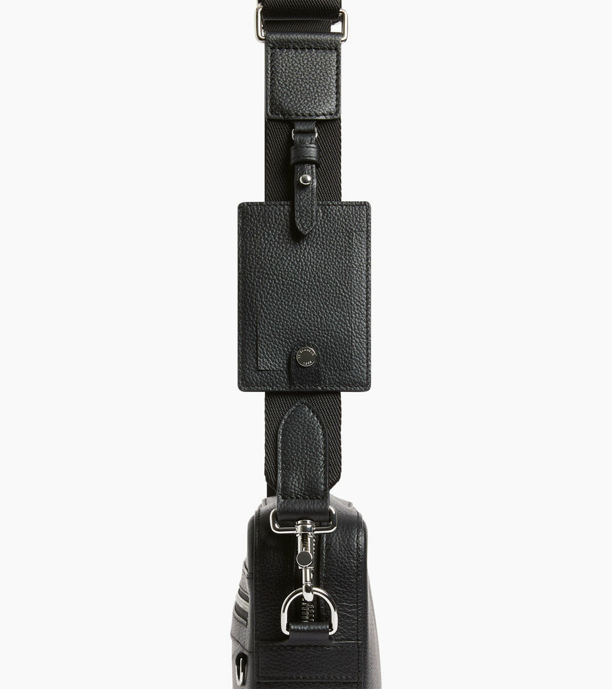 1 poche zippée avant, 1 poche plate, 1 poche zippée. Bandoulière ajustable et amovible.