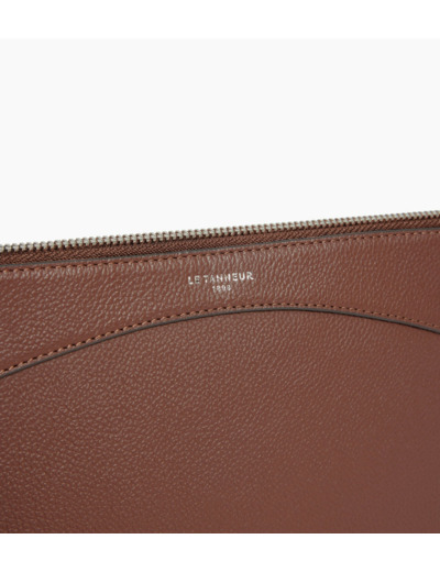 Pochette zippée en cuir grainé