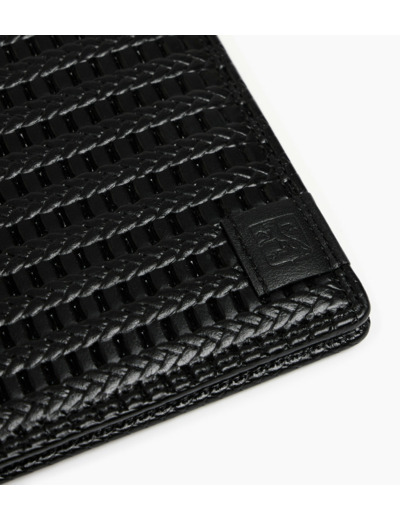 Porte-cartes horizontal deux volets avec marquage Le Tanneur ton sur ton et sécurité anti-RFID.