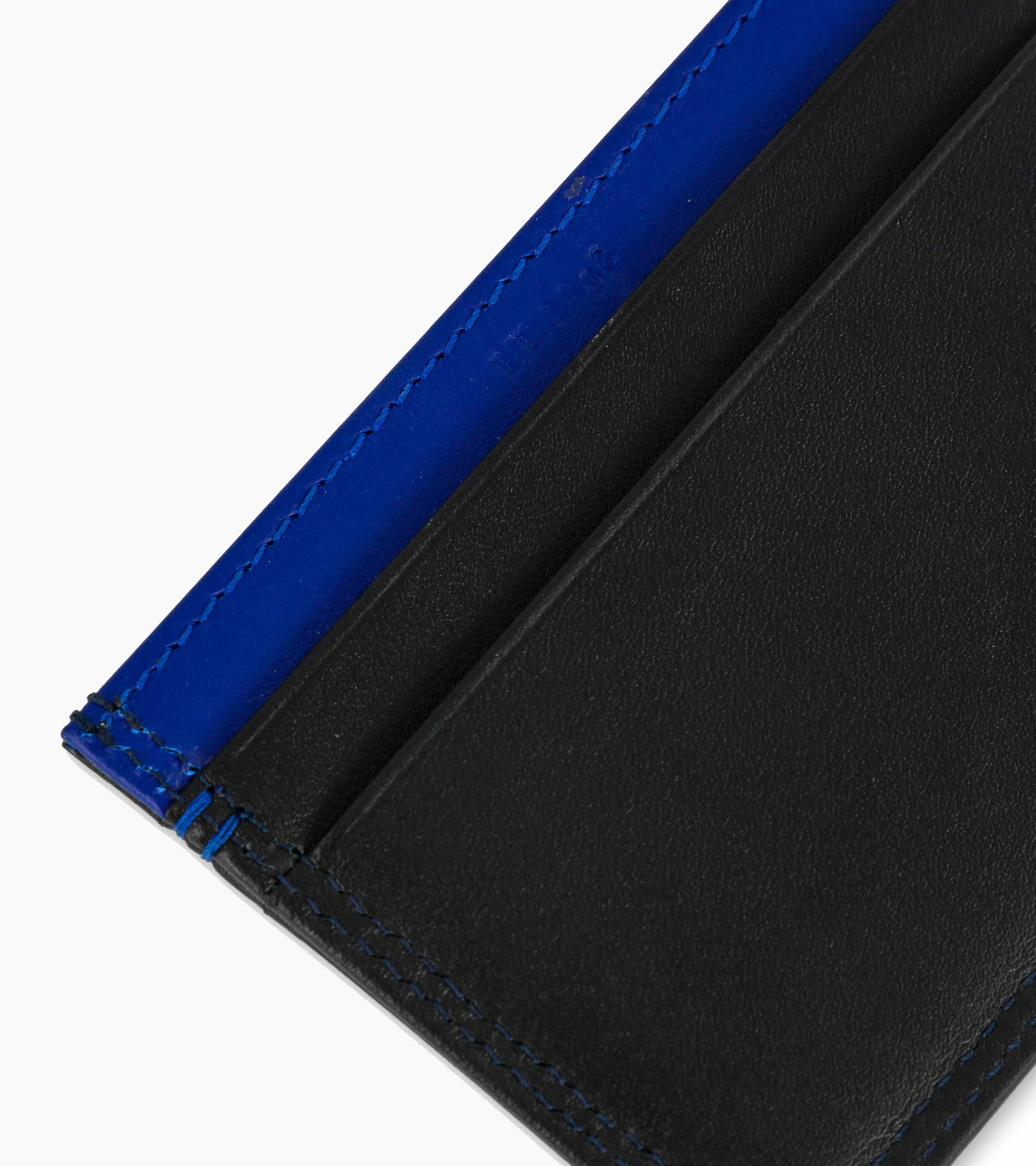 Ce porte-cartes arbore un discret marquage Le Tanneur couleur Le Bleu, ainsi qu’un double point du même contraste cousu à la main.