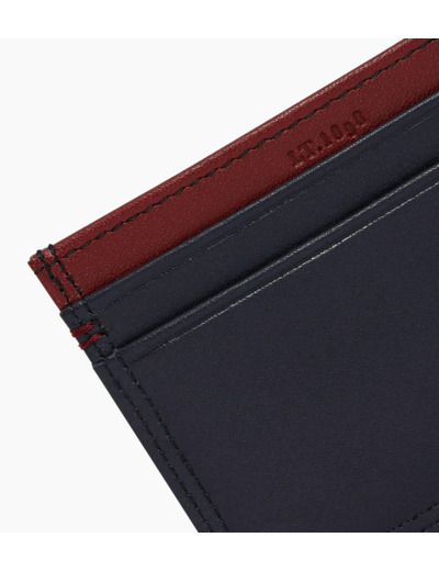 Ce porte-cartes arbore un discret marquage Le Tanneur couleur Le Bleu, ainsi qu’un double point du même contraste cousu à la main.
