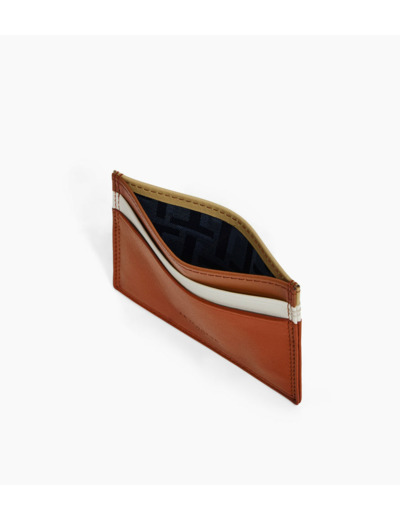 Porte-cartes multicolore avec points bride contrastés réalisés à la main et marquage Le Tanneur ton sur ton. Dispose d'une protection RFID.