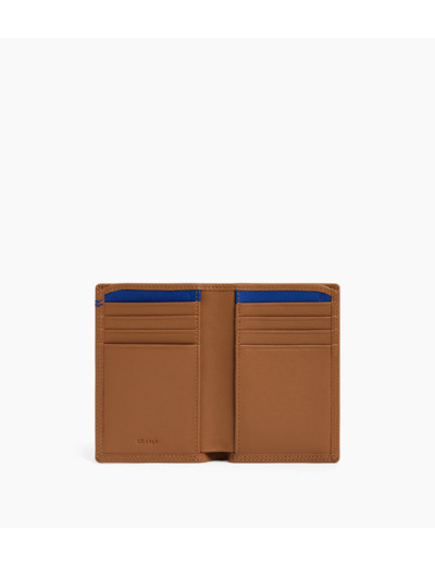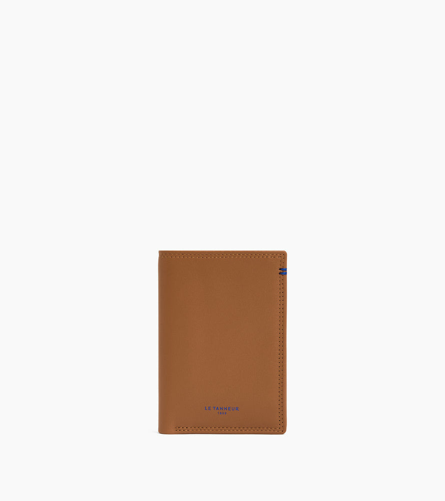 Portefeuille grand format vertical avec marquage Le Tanneur sur film Le Bleu, signature de la Maison. Double point contrasté cousu à la main. Dispose d'une sécurité anti-RFID.