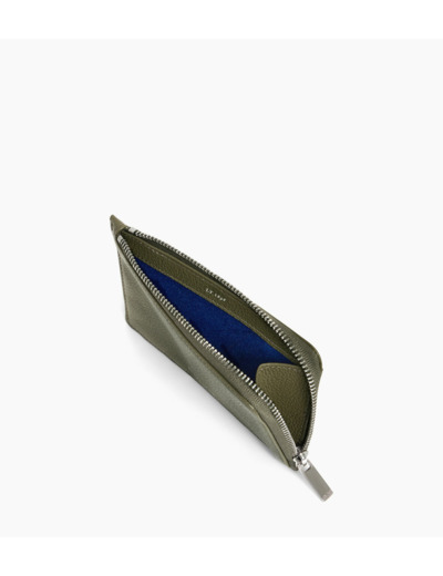 Porte-cartes en cuir T signature, zippé en L et avec marquage Le Tanneur.