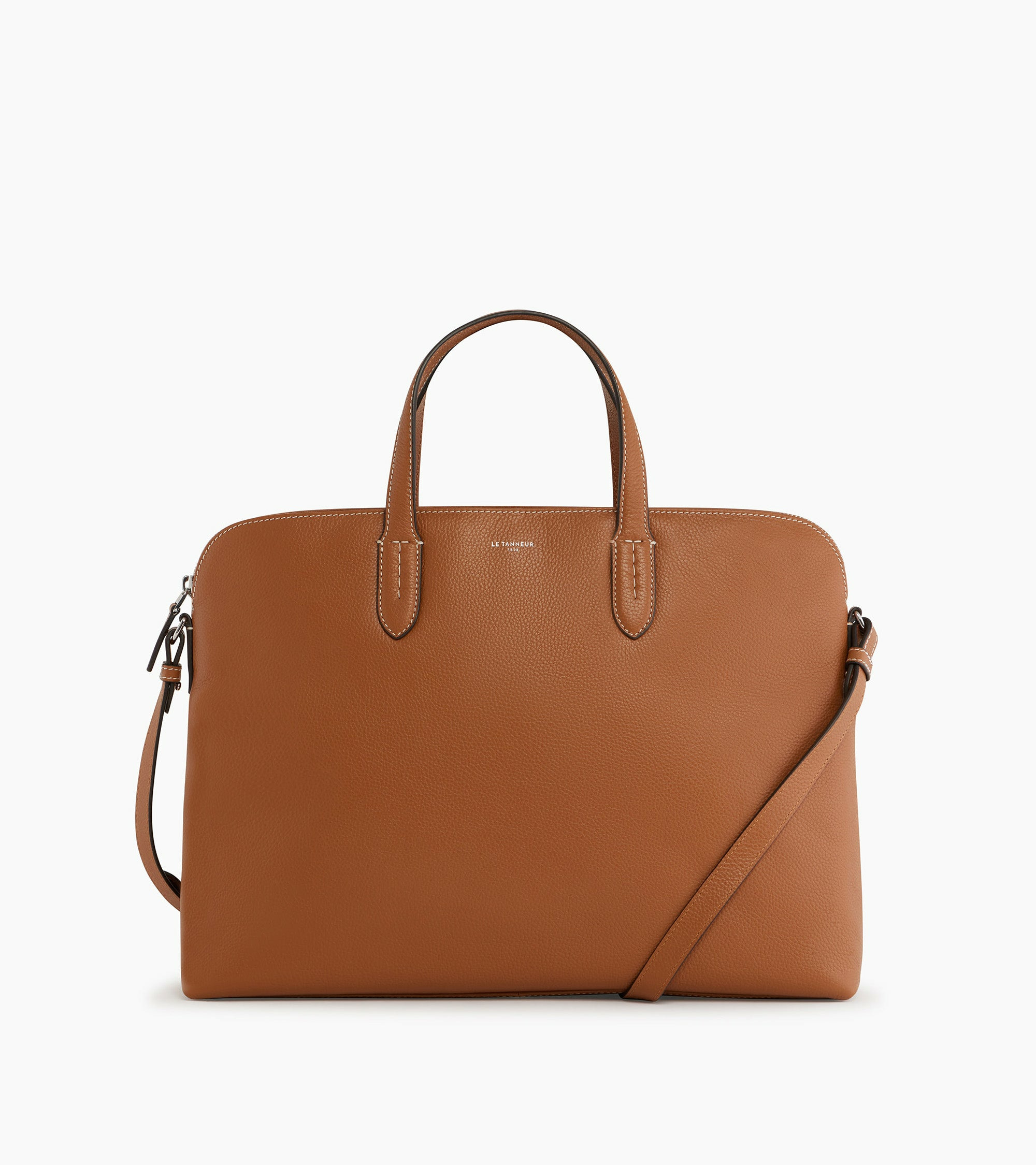 Porte-documents avec poignées ogives piquées en T et marquage Le Tanneur finition argent. Porté main, croisé ou à épaule grâce sa bandoulière ajustable et amovible. Peut accueillir un ordinateur portable 15”.
