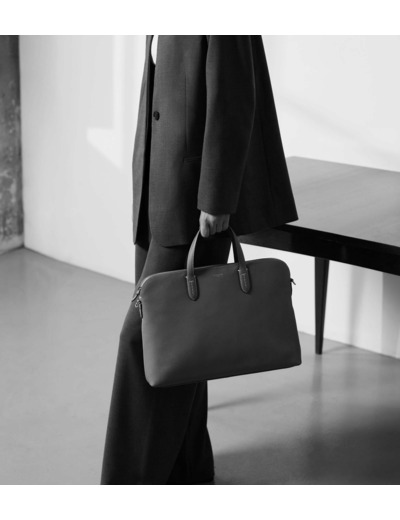 Porte-documents avec poignées ogives piquées en T et marquage Le Tanneur finition argent. Porté main, croisé ou à épaule grâce sa bandoulière ajustable et amovible. Peut accueillir un ordinateur portable 15”.