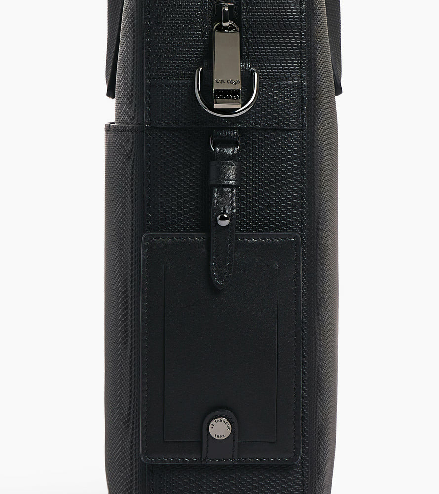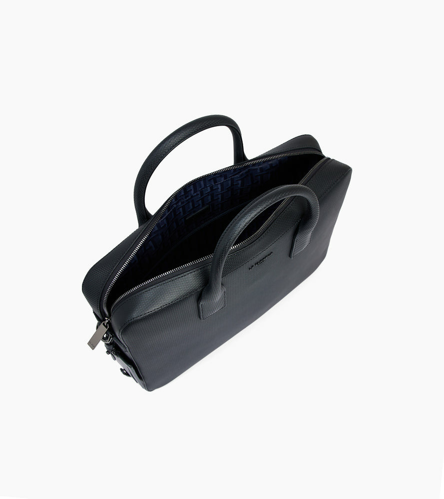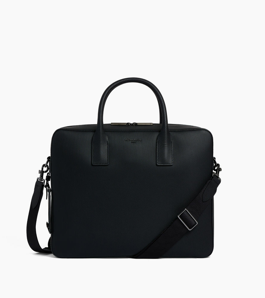 Ce porte-documents en cuir T signature de la Maison arbore un marquage en métal laqué ton sur ton. Portez-le à la main, croisé ou à l’épaule avec sa bandoulière ajustable amovible. Peut accueillir un ordinateur portable 14”.
