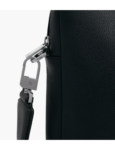 1 pression clés, 3 passants stylos, 2 poches plates et 1 poche zippée. 1 poche plate zippée arrière. Passant trolley. Bandoulière ajustable et amovible avec passant épaule.