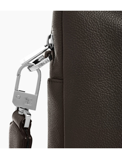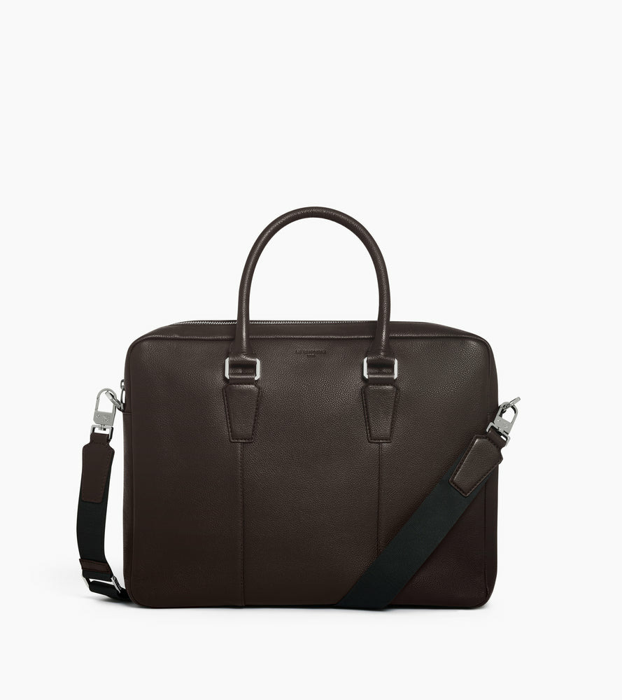 Porte-documents slim avec poche ordinateur 13-14", bouclerie gravée et marquage Le Tanneur ton sur ton. Doublure 100% coton bleu marine. Porté main, épaule ou croisé grâce à sa bandoulière ajustable et amovible.