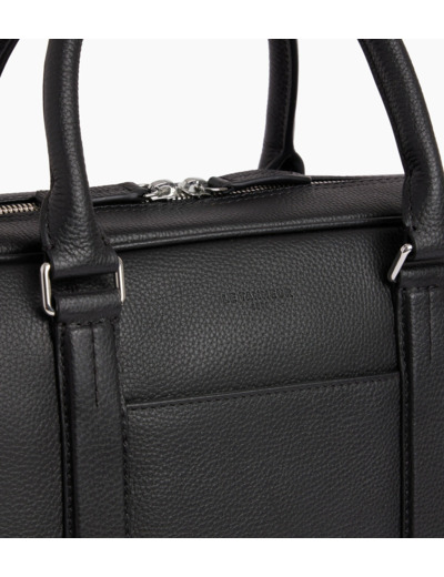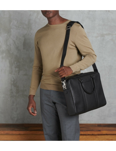 Porte-documents avec poche ordinateur moussée 15, passant trolley et marquage Le Tanneur ton sur ton. Porté main, croisé ou épaule grâce à sa bandoulière amovible avec passant épaule.