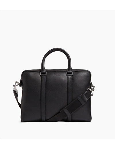 Porte-documents avec pochette ordinateur 14-15" et poignées rigides et détails finition argent. Bandes ajustées piquées en T, signature de la Maison. Portez-le à la main, à l’épaule ou croisé avec sa bandoulière ajustable amovible. Peut accueillir un ordinateur portable 17