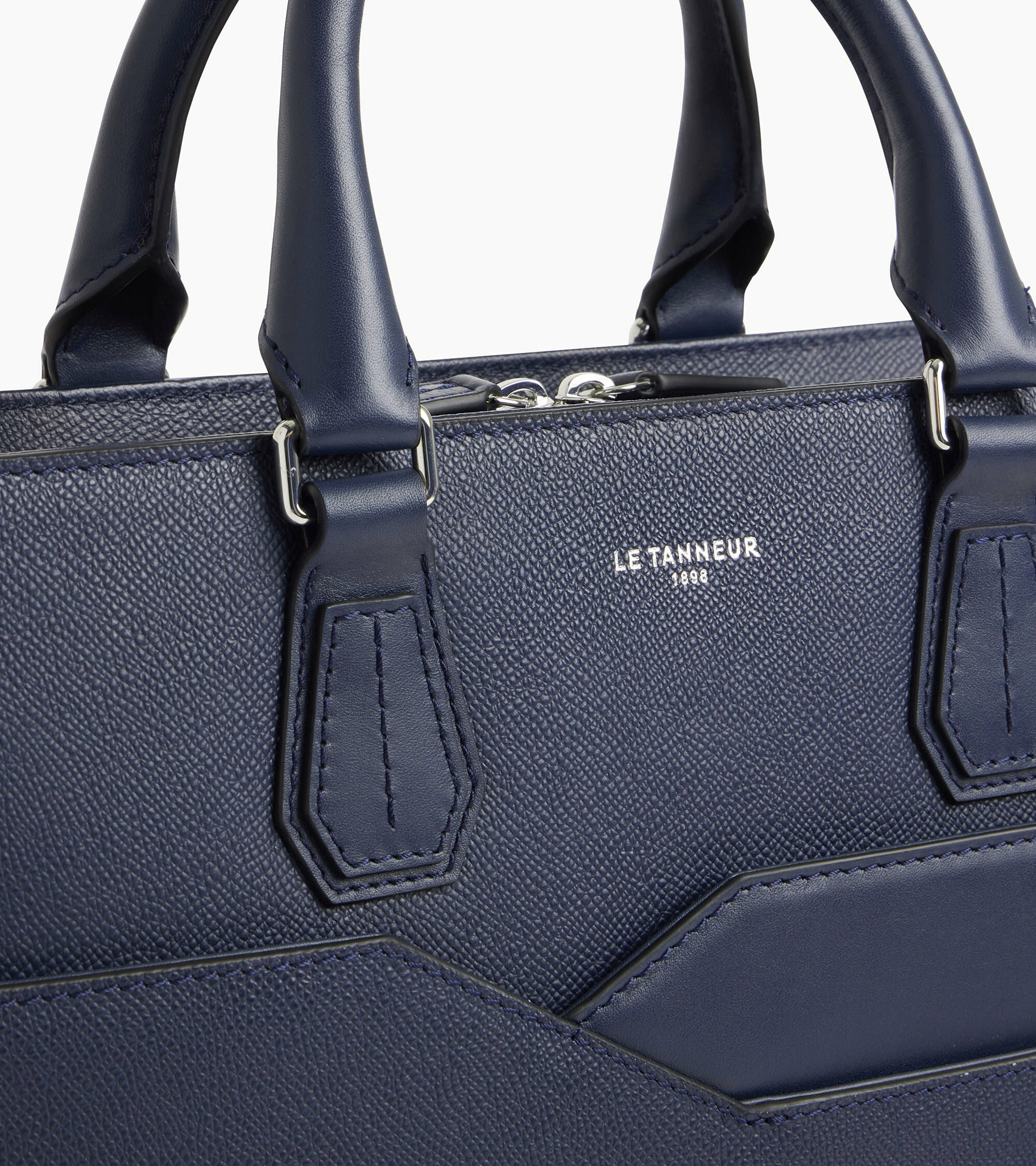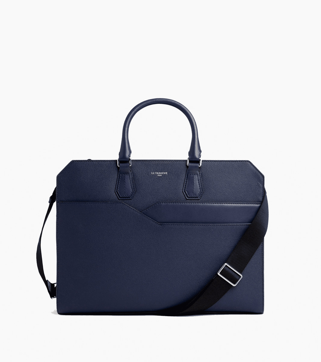 Porte-documents avec poche ordinateur 15. Marquage Le Tanneur et éléments métalliques finition argent. Porté main, épaule ou croisé grâce à sa bandoulière ajustable et amovible."