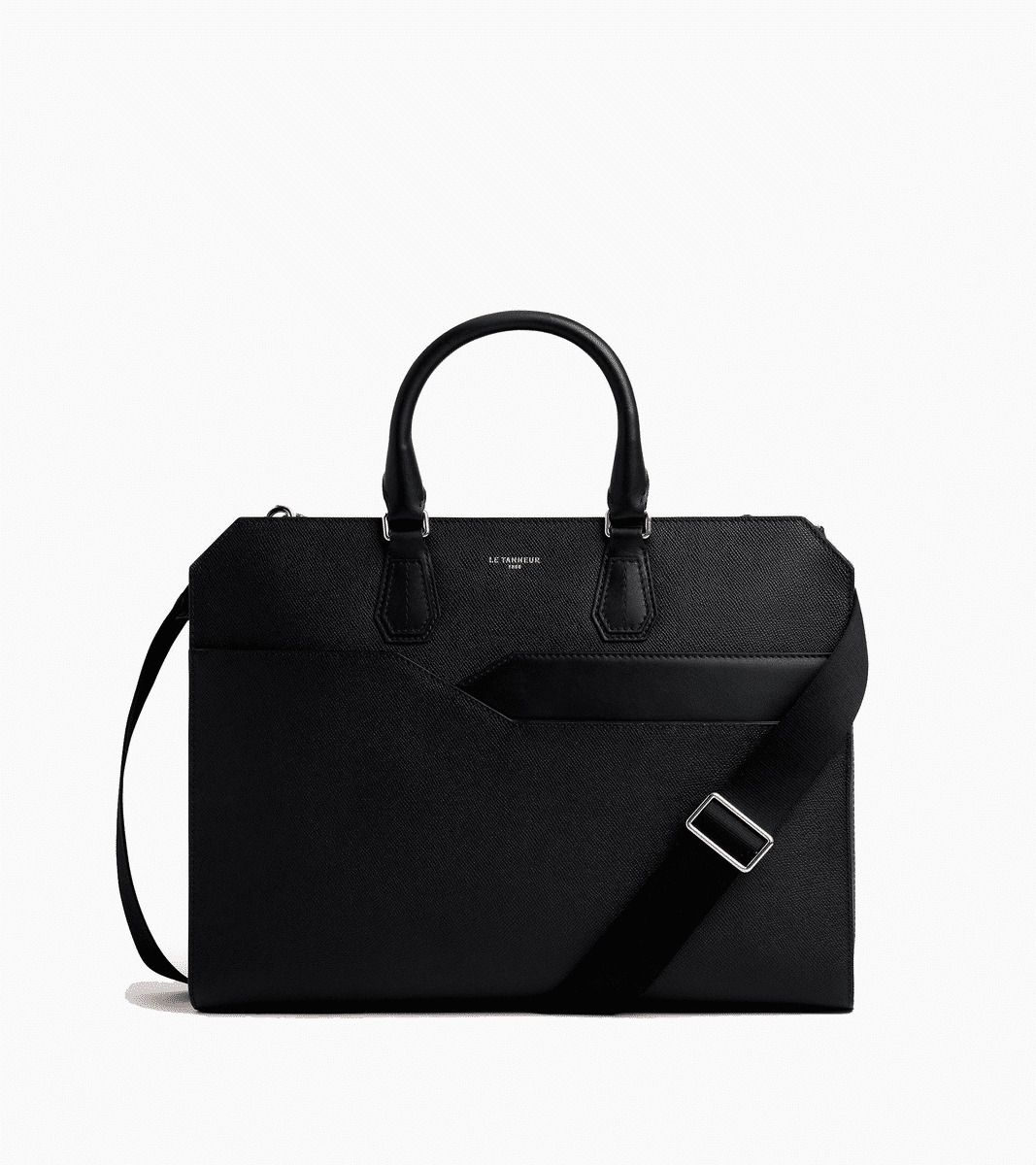 Porte-documents avec poche ordinateur 15. Marquage Le Tanneur et éléments métalliques finition argent. Porté main, épaule ou croisé grâce à sa bandoulière ajustable et amovible."