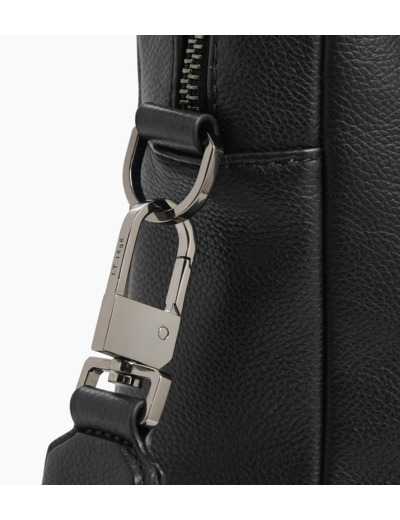 Porte-documents avec poche ordinateur 17", éléments métalliques gravés finition canon de fusil et marquage Le Tanneur ton sur ton. Doublure 100% coton bleu marine. Porté main, épaule ou croisé grâce à sa bandoulière ajustable et amovible.