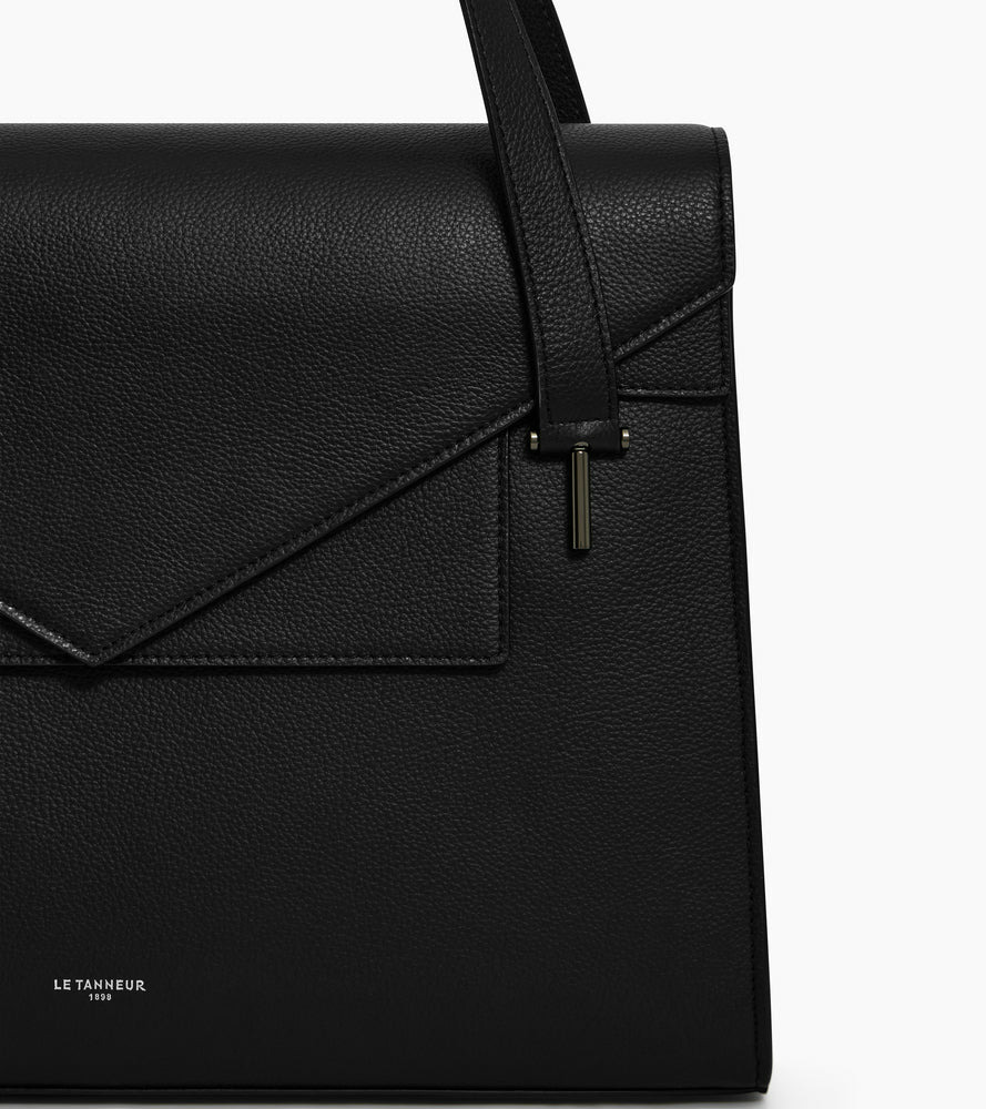 Porte-documents double rabat marqué Le Tanneur, avec poche ordinateur 13", poignées signature et passant trolley. Dispose de mousquetons pour ajout de bandoulière. Porté épaule ou croisé.