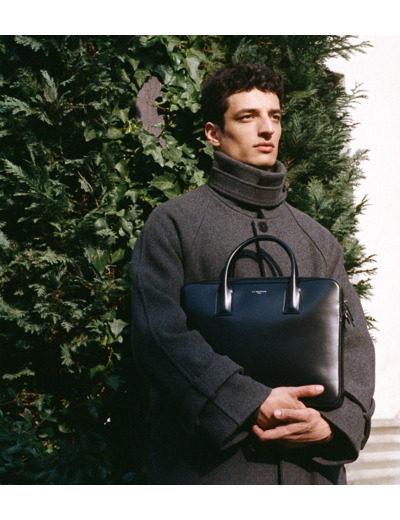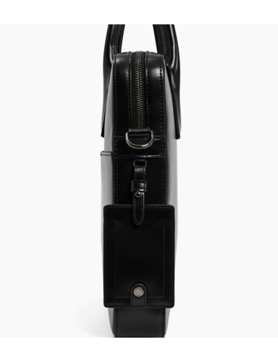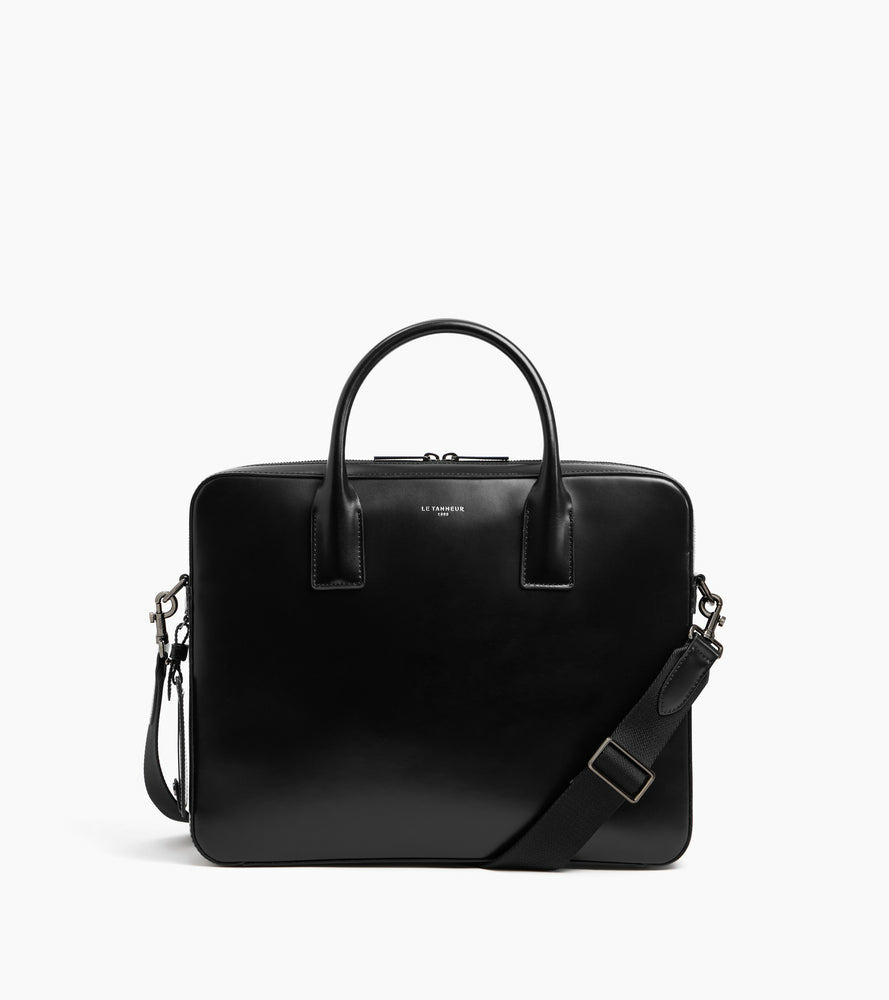 Porte-documents slim finition canon de fusil avec poche ordinateur 14", passant trolley, charms amovible et marquage Le Tanneur sur film argent. Porté main, épaule ou croisé grâce à sa bandoulière ajustable et amovible."