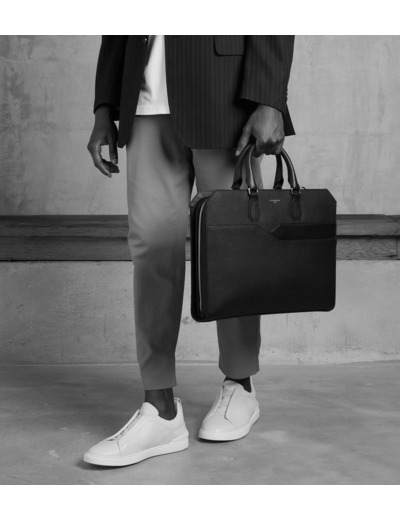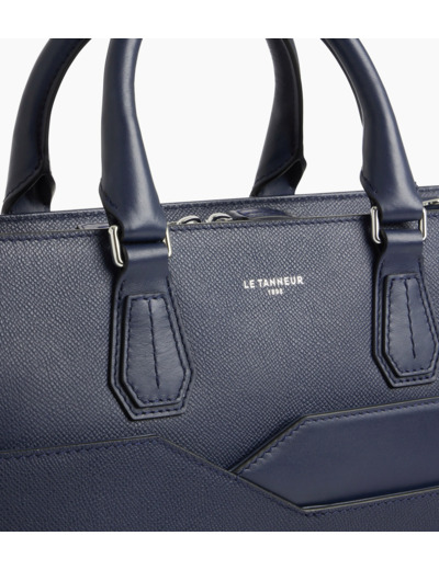 Porte-documents slim avec poche ordinateur 15. Marquage Le Tanneur et éléments métalliques finition argent. Porté main, épaule ou croisé grâce à sa bandoulière ajustable et amovible."