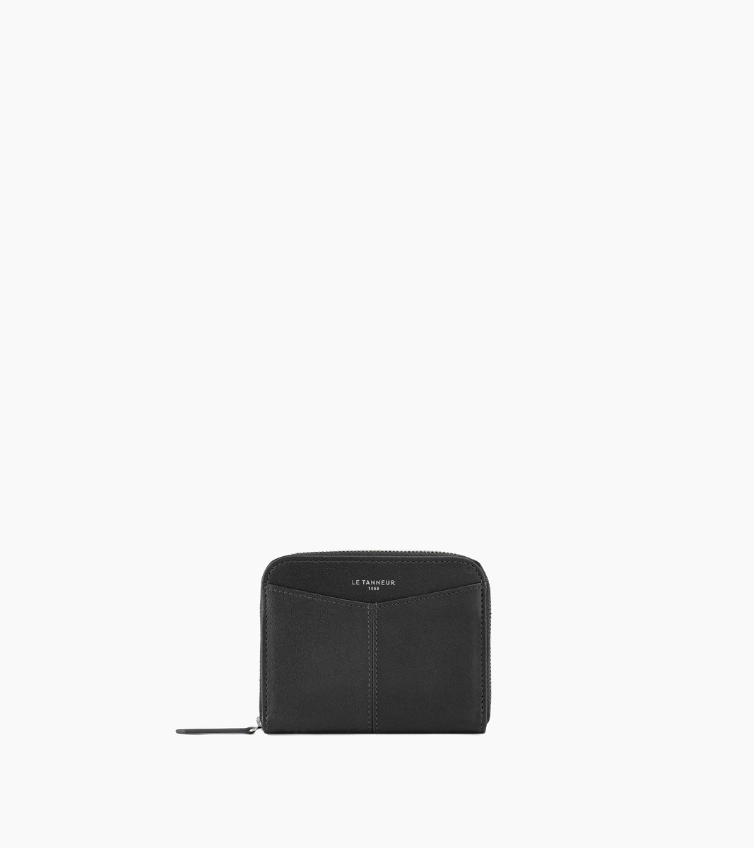 2 soufflets, 1 poche zippée monnaie et 2 compartiments cartes. 1 poche plate arrière. 1 porte cartes amovible avec 1 poche plate et 4 compartiments cartes.
