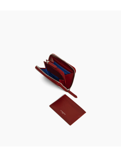 Porte monnaie zippé avec porte cartes amovible Charlotte en cuir lisse