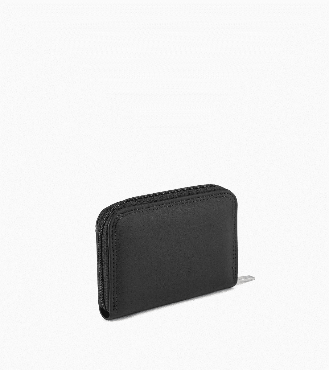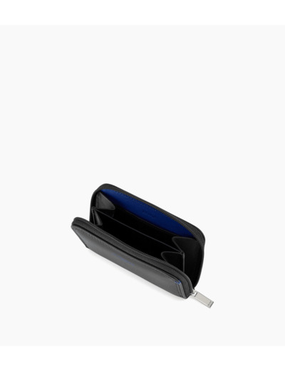 Ce porte-monnaie zippé arbore un marquage Le Tanneur couleur Le Bleu, ainsi qu’un double point du même contraste cousu à la main.