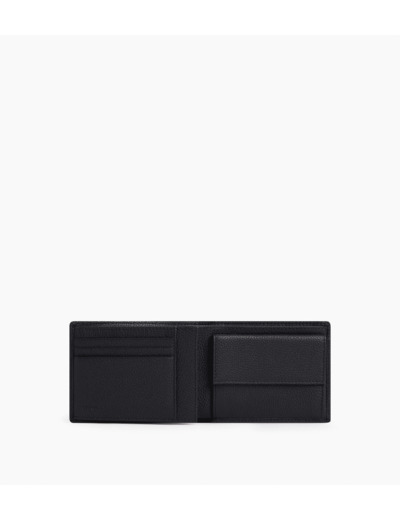 3 poches plates, 1 poche ID, 1 poche monnaie rabat, 2 poches billets et 6 compartiments cartes, 1 poche plate arrière.