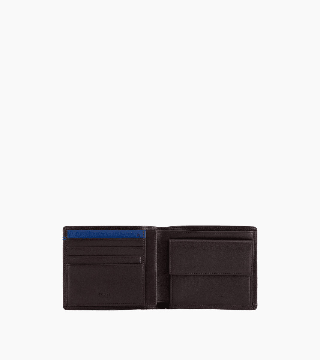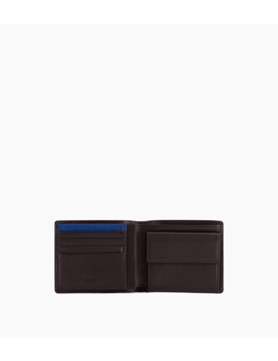 2 poches plates, 1 poche ID, 1 poche monnaie rabat, 2 poches billets et 8 compartiments cartes.