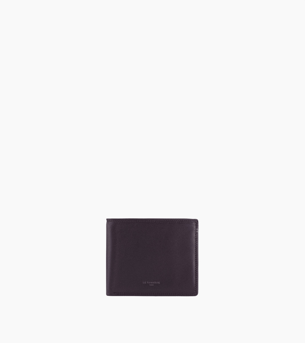 Ce portefeuille deux volets avec poche monnaie à rabat arbore un discret marquage Le Tanneur couleur Le Bleu, ainsi qu’un double point du même contraste cousu à la main.