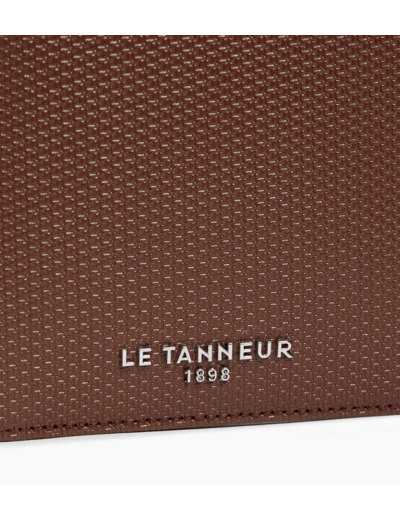 Portefeuille horizontal deux volets avec poche monnaie zippée et marquage Le Tanneur. Sécurité anti-RFID.