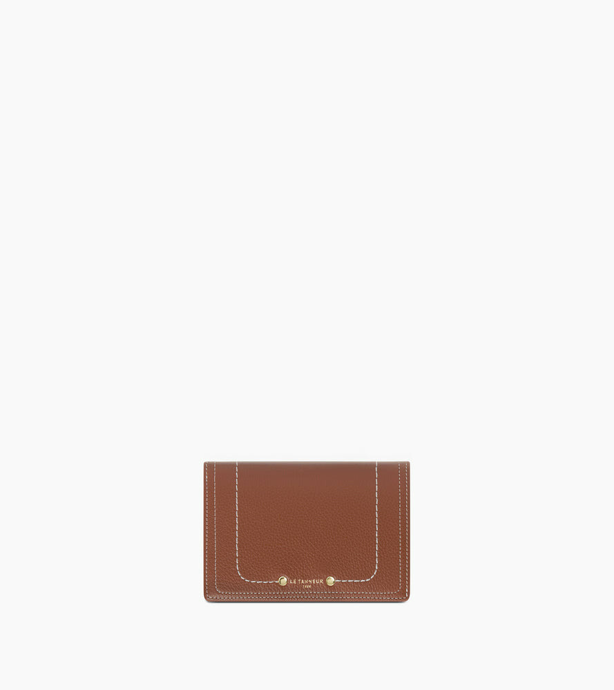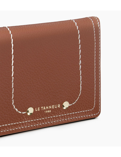 Portefeuille moyen format avec fermeture pression, poche monnaie zippée et marquage Le Tanneur. Dispose d'une protection RFID.