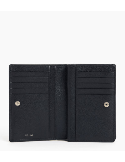 Portefeuille moyen format avec fermeture pression, poche monnaie zippée et marquage Le Tanneur. Dispose d'une protection RFID.