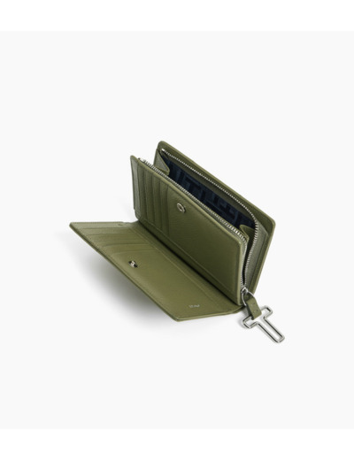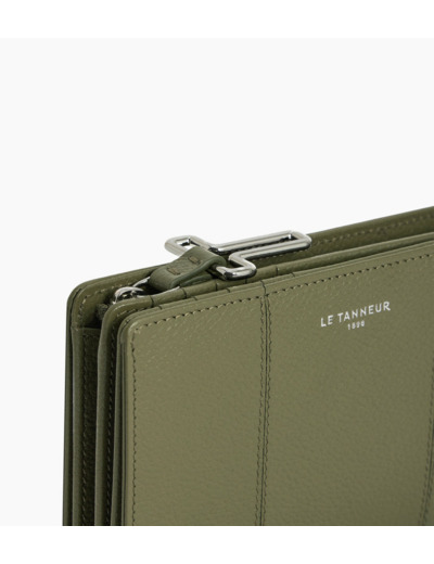 Portefeuille moyen format avec fermeture pression, marquage Le Tanneur et poche monnaie zip T signature.