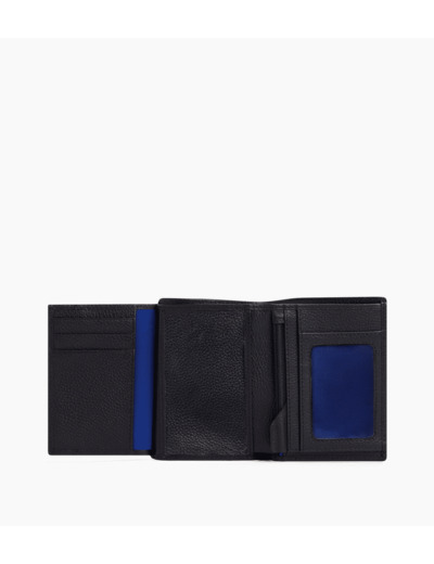 3 poches plates, 2 poches ID, 1 poche monnaie zippée, 2 poches billets et 6 compartiments cartes.