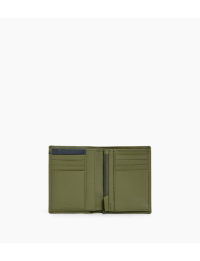 3 poches plates, 2 poches ID, 1 poche monnaie zippée, 1 poche billets et 8 compartiments cartes.