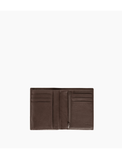 2 poches plates, 3 poches ID, 1 poche monnaie zippée, 2 poches billets et 6 compartiments cartes.