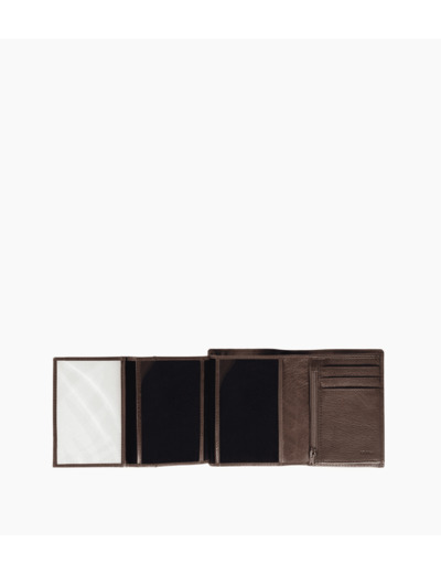 Portefeuille trois volets en cuir huilé qui se patine avec le temps. Embossage Le Tanneur ton sur ton.