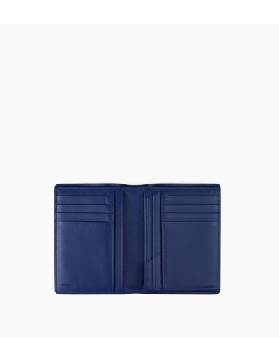 Portefeuille billets modèle vertical, avec poche monnaie zippée et liseré bord franc bleu signature. Sécurité anti-RFID.