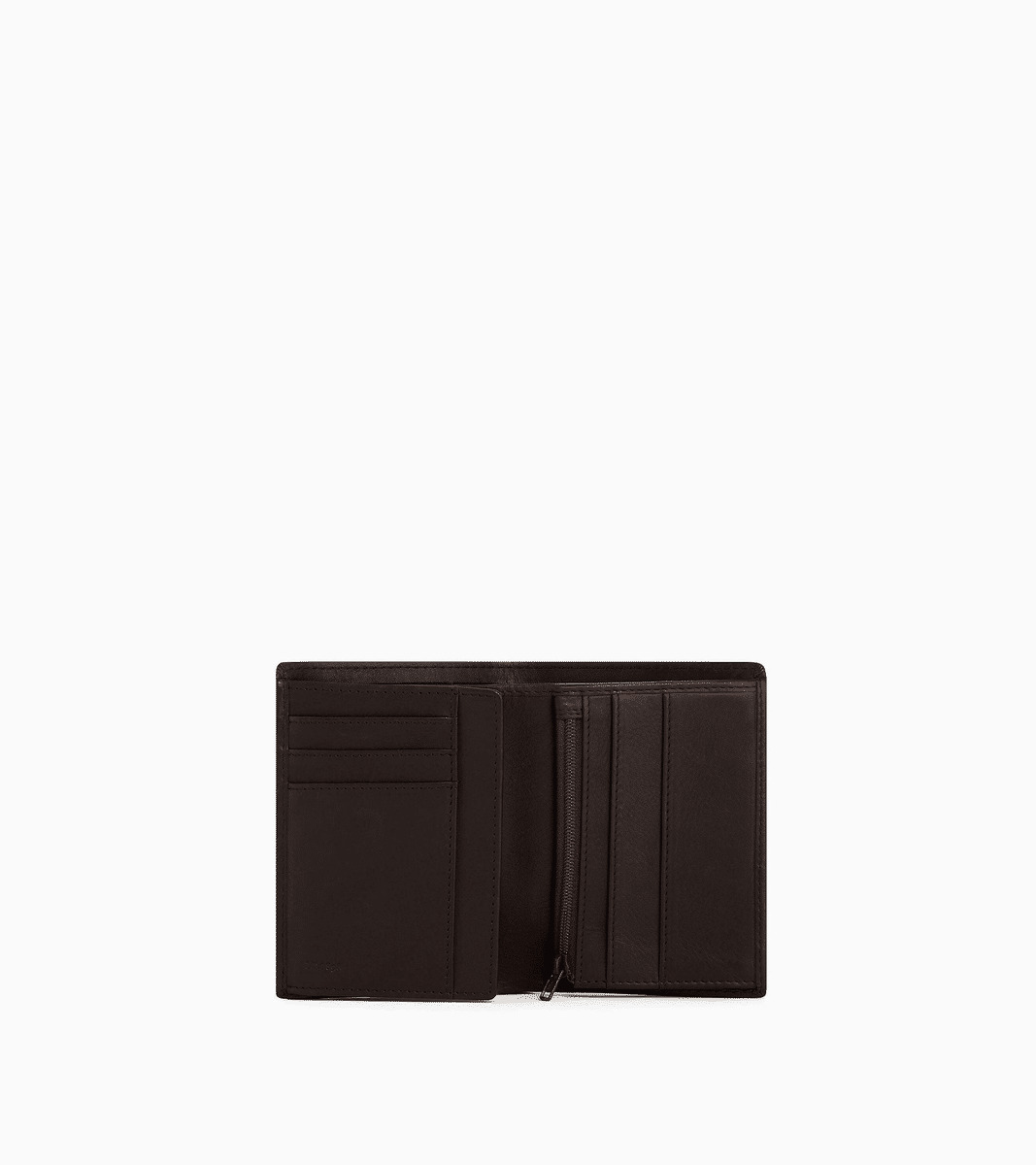 5 poches plates, 1 poche ID, 1 poche monnaie zippée, 2 poches billets et 6 compartiments cartes.