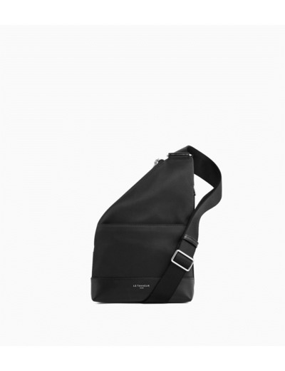Sac à dos mono bretelle en toile polyamide avec renfort en cuir. Ce modèle possède un marquage Le Tanneur ton sur ton. Bandoulière est ajustable.