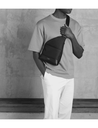 Sac à dos mono bretelle en toile polyamide avec renfort en cuir. Ce modèle possède un marquage Le Tanneur ton sur ton. Bandoulière est ajustable.