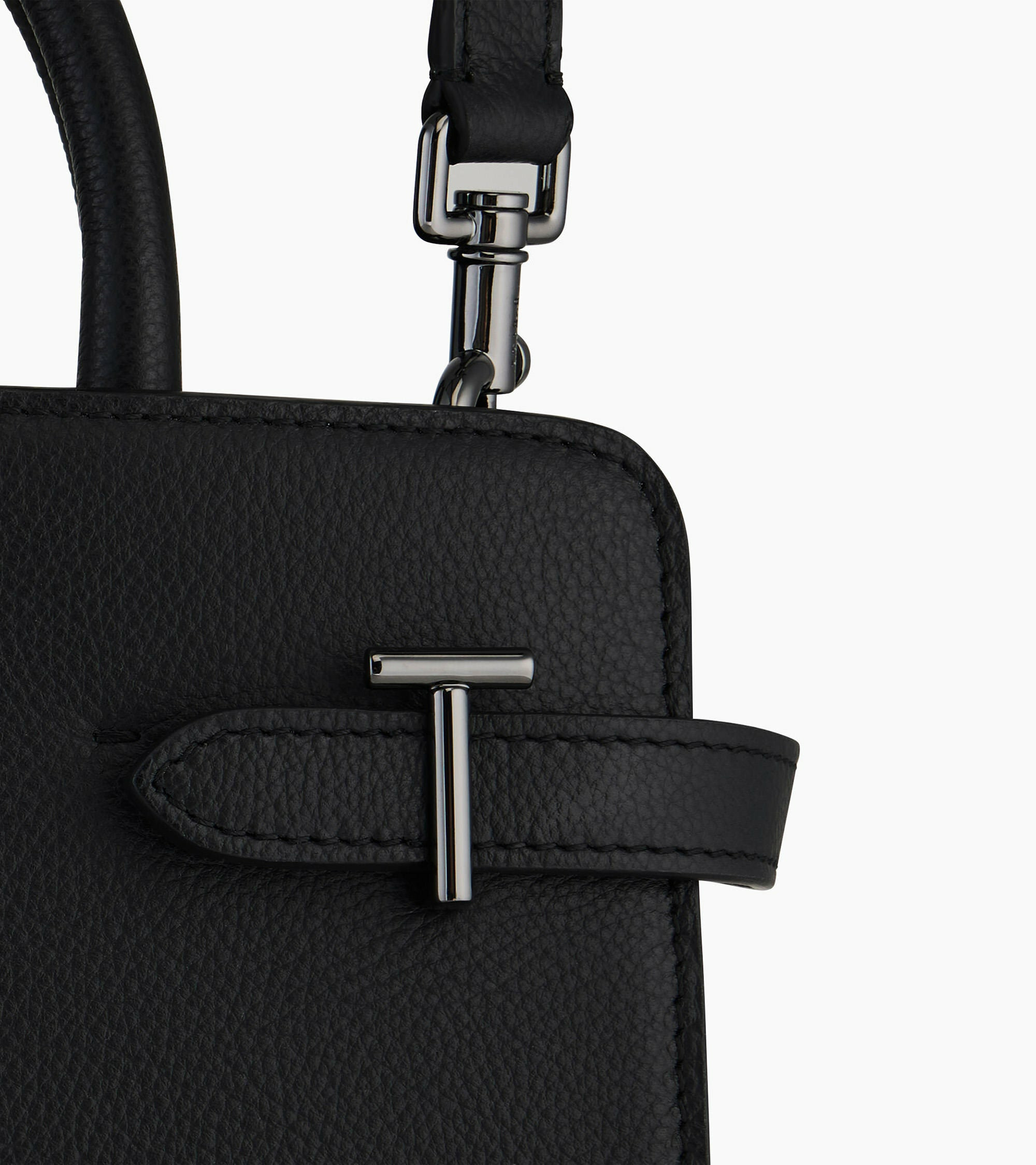 Sac à main moyen modèle avec poignées toron et trois compartiments dont un zippé. Pièces T métalliques signature de la ligne. Charms embossé Le Tanneur amovible. Porté main, épaule ou croisé grâce à sa bandoulière ajustable et amovible.