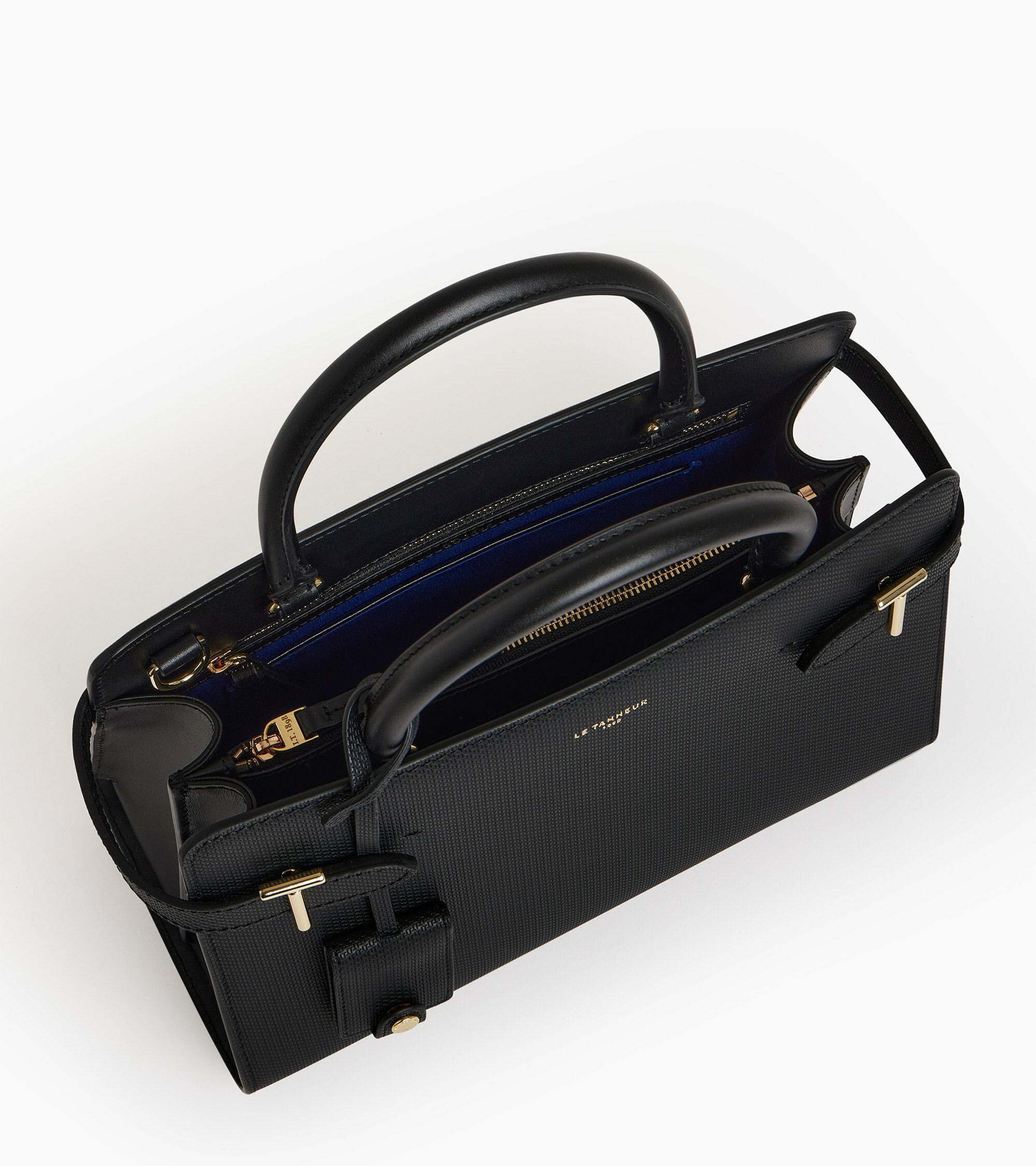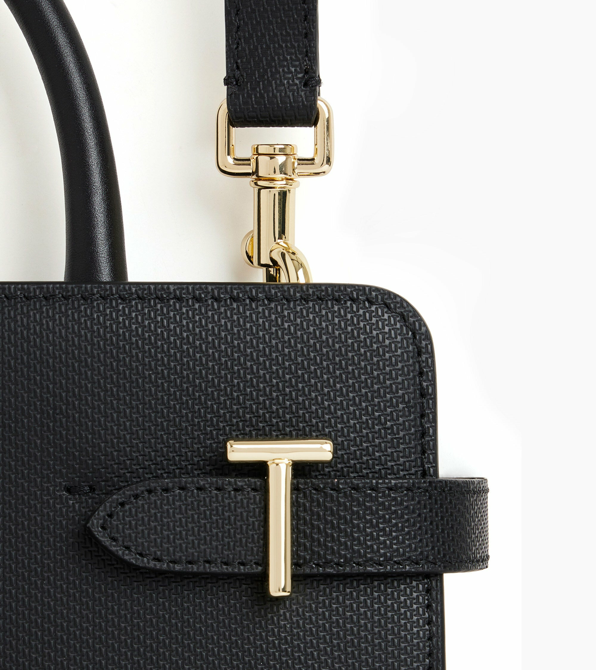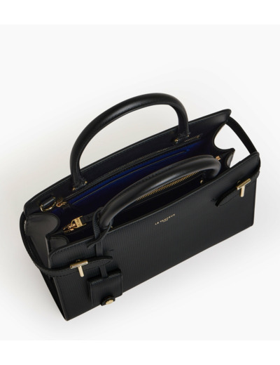 Sac à main moyen modèle rigide arbore les fermoirs T de la Maison. Il dispose de patins de protection et d'un charms amovible. Portez-le à la main, à l'épaule ou croisé grâce à sa bandoulière amovible ajustable.