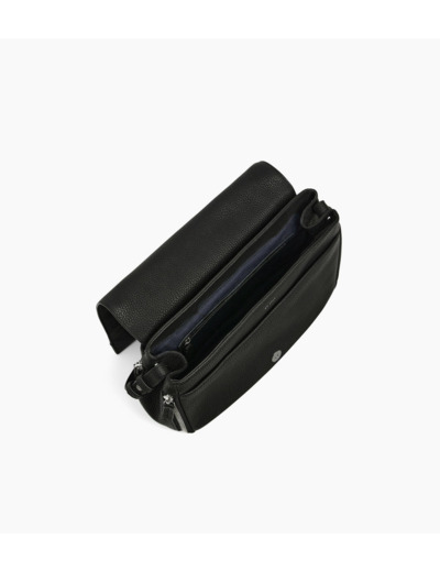 2 poches plates et 1 poche zippée. 2 soufflets zippés, 1 poche arrière bouton aimanté. Bandoulière ajustable et mini bandoulière porté épaule.