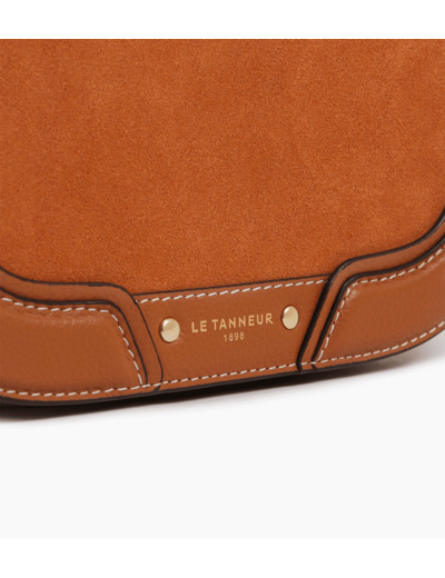 Besace moyen modèle en cuir grainé et nubuck, avec fermeture aimantée, marquage Le Tanneur et intérieur jacquard anniversaire 125 ans. Porté main, croisé ou épaule grâce à sa bandoulière ajustable et sa poignée amovible ajustée au corps du sac.