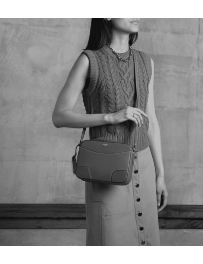 Sac bandoulière moyen modèle avec charms porte-étiquette signature amovible. Marquage Le Tanneur et éléments métalliques finition argent. Porté épaule ou croisé grâce à sa bandoulière ajustable.