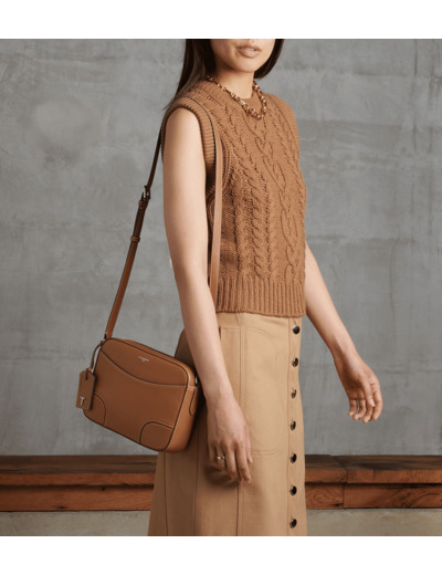 Sac bandoulière moyen modèle avec porte-étiquette signature amovible. Marquage Le Tanneur et éléments métalliques finition argent. Porté main, épaule ou croisé grâce à sa bandoulière ajustable.